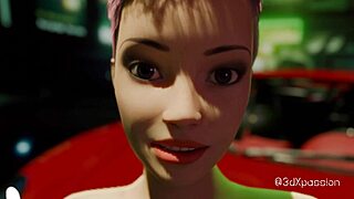 under neon skin sexy cyberpunk girl big tits gets huge cumshot on her face with blowjob and assfucking