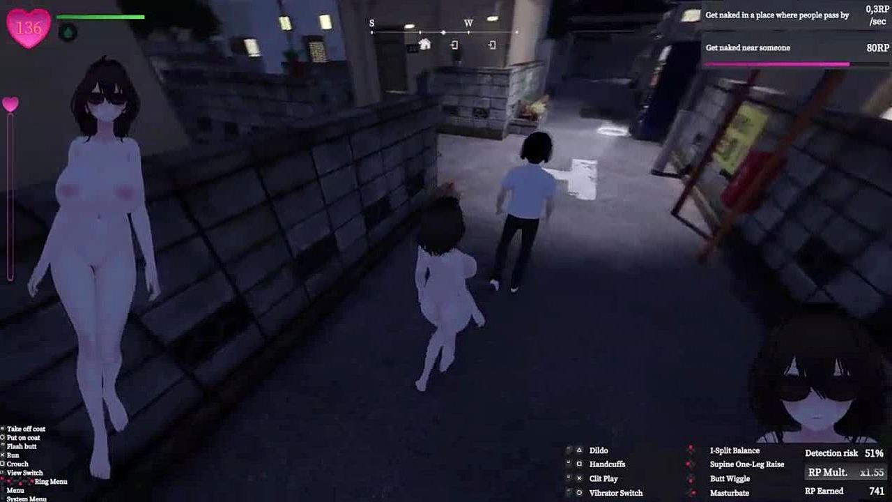 Hitchhiking Brunette Flashing Tits in Public Outdoor Anime Scene