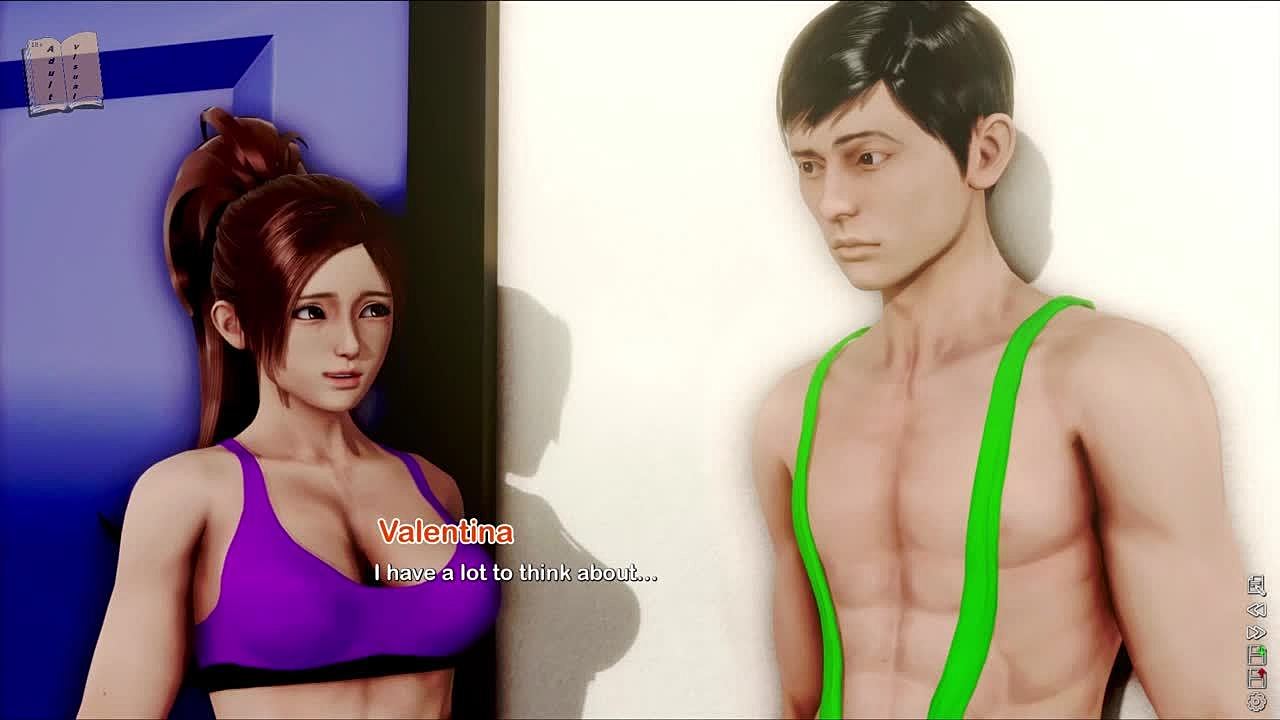 In Milfy City episode 38, the stepmom allows a peek at Sara's panties in this animated brunette lingerie scene from the game.