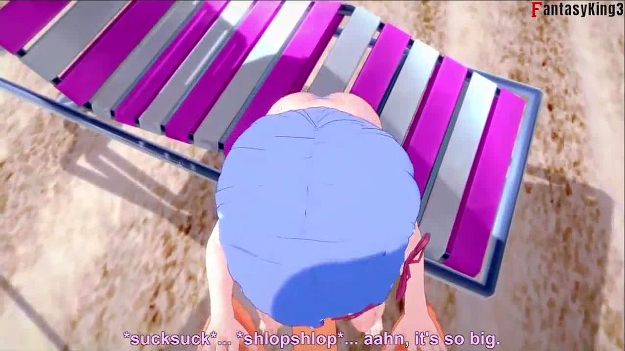 अरे, देखो ये 3डी एनिमेशन जहां बस्टी ब्लोंड बीच पर मॉन्स्टर लंड से क्रीमपाई होती है